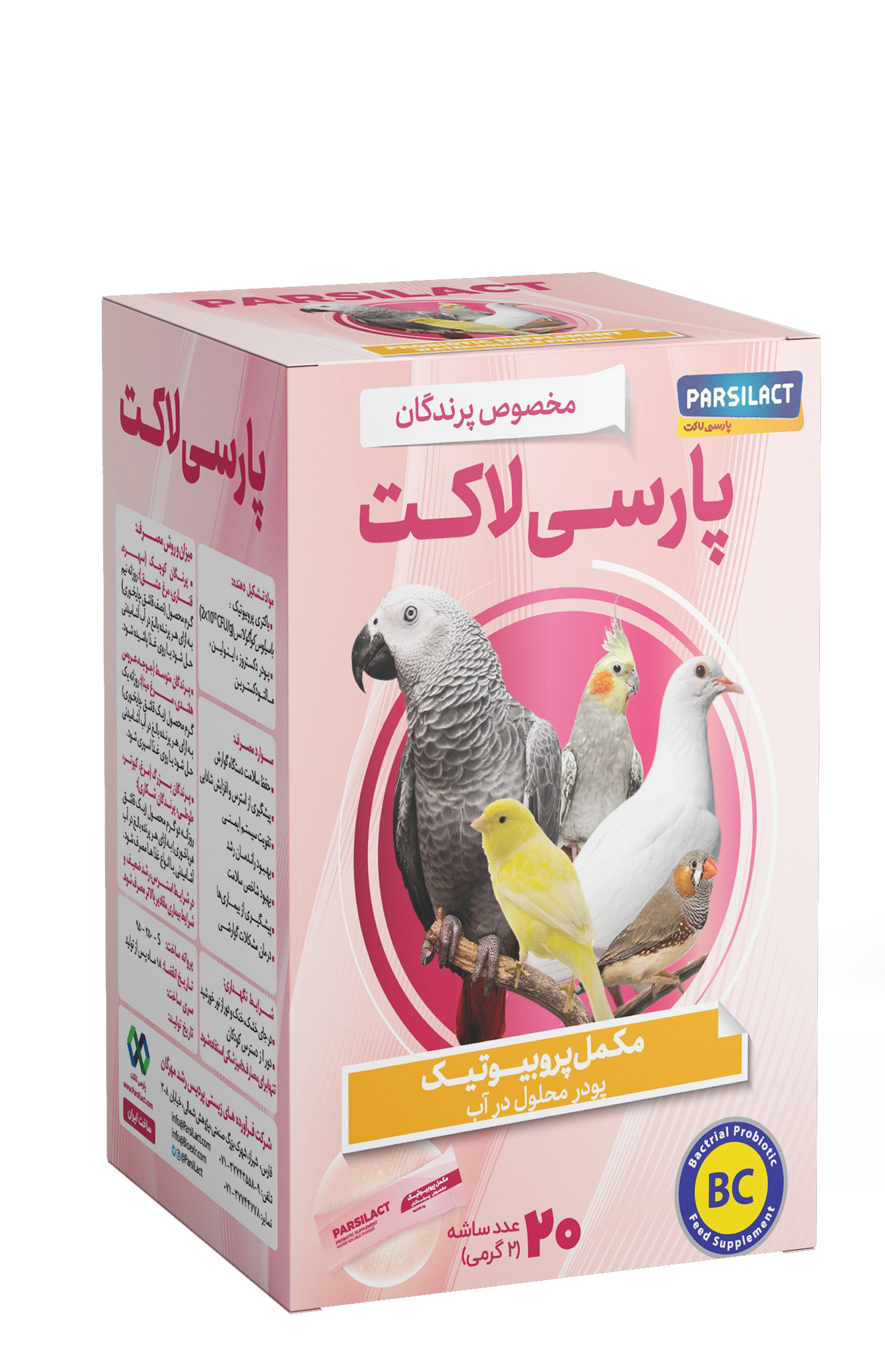 سین بیوتیک ( پروبیوتیک + پری بیوتیک ) پرندگان زینتی پارسی لاکت بسته ساشه ۲۰ عددی